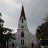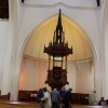 | Preekstoel binne die kerk. Dis onbekend presies waar graf nr. 8 van Jacques en Isabeau is. Daar word vermoed dat die graf omtrent halfpad tussen die preekstoel en die linkerhandse pilaar en dan omtrent halfpad tussen die preekstoel en die banke voor die preekstoel is. | |