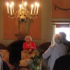 | Begin van die verrigtinge binne die huis. Die voorsitter van die Familiebond, Dennis Malan, is aan die woord. Weens 'n operasie aan sy voet was sy voet in gips en moes hy met 'n rolstoel oor die weg kom. | |