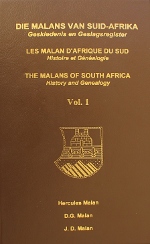 Die Malans van Suid-Afrika - Geskiedenis en GeslagsregisterLes Malan D'Afrique du Sud - Histoire et GénéalogyThe Malans of South Africa - History and GenealogyHercules Malan, D.G. Malan, J.D. Malan. Bloemfontein 1998. ISBN 0 620 22448 7 |