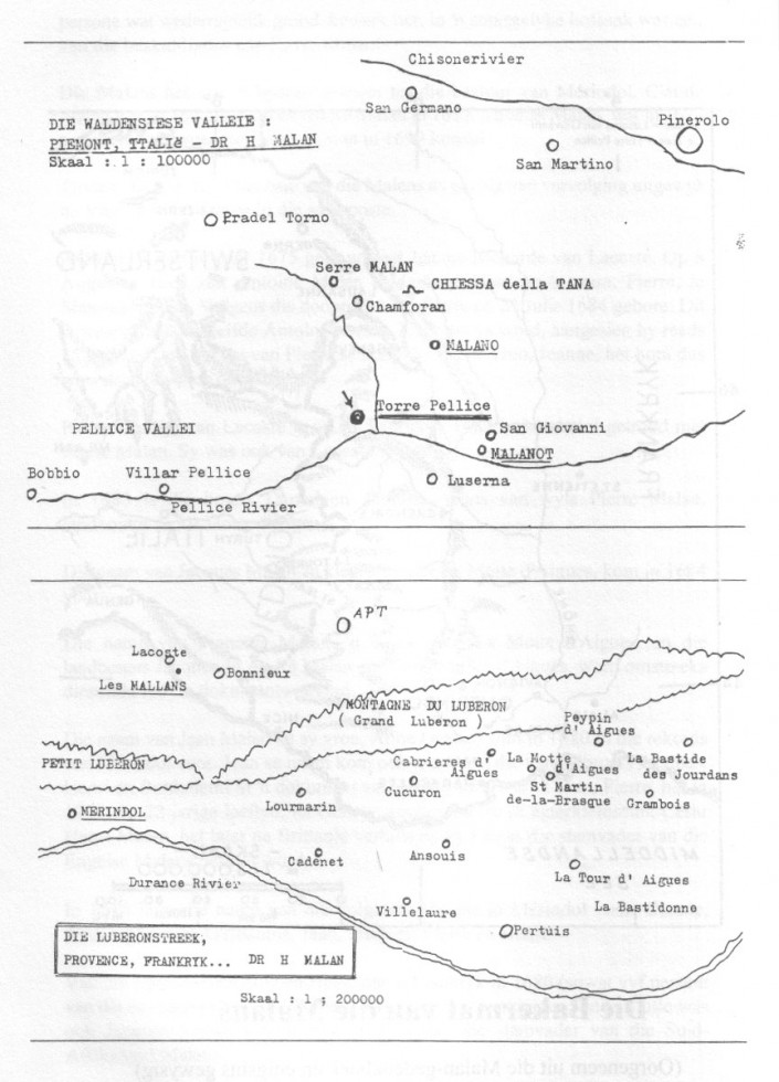 In 1415 verskyn die naam van 'n Malan vir die eerste keer in 'n dokument in La Tour. (La Tour is vandag bekend onder die Italiaanse naam Torre Pellice).