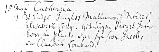 Jacobus, is gebore op 2 Julie 1700. Sy doopsinskrywing is weg of hy is oorlede voor hy gedoop is aangesien ons nie weet wanneer hy oorlede is nie. Ons weet wel dat hy jonk oorlede is.